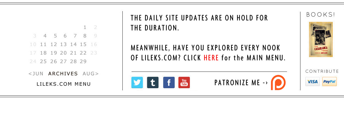 Almost done. Hope you've enjoyed Hiatus Fortnight, and found it a welcome break from previous Hiatal Fortnights, the basic message of which was "see ya!"