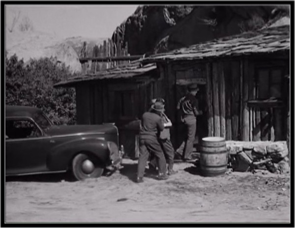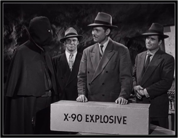 So Vicky Vale shows up at the Stafford to take Dr. Morton’s picture, because visiting inventors of explosives are always a Page One item; the henchmen show up at the same time and take everyone hostage. What’ll it be, apartment, shack, or mine?