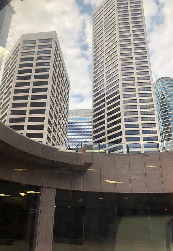 . . . and some days there’s a fountain thundering down behind the glass, which of course is exactly how you want to see a waterfall: behind glass. This is the tunnel that connects the Government Center to City Hall, slithering in the back and leading to deserted spaces that feel like a video game setting. It’s always quiet and unpopulated in City Hall. Surely it wasn’t always so.