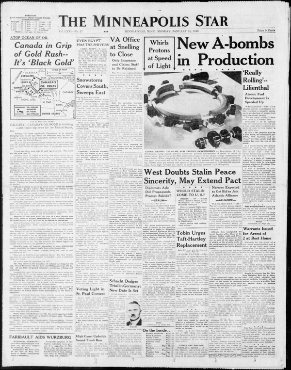 The end of the first month of 1949. Here's the front page. There’s some cheerful news!