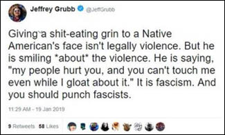 So you see a tweet about how some kids surrounded and taunted a Tribal Elder, and the main kid is punchable, and it’s a natural leap: KILL THEM, AND KILL THEIR PARENTS.