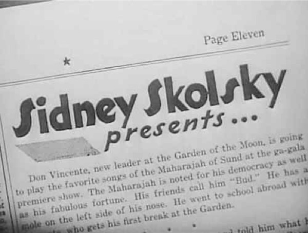 The plot is annoyingly contentious. Rudy Vallee can't play the club because he his band had a bus crash. This is announced by a reedy-voiced radio guy whose character has the name Jimmie Fidler: