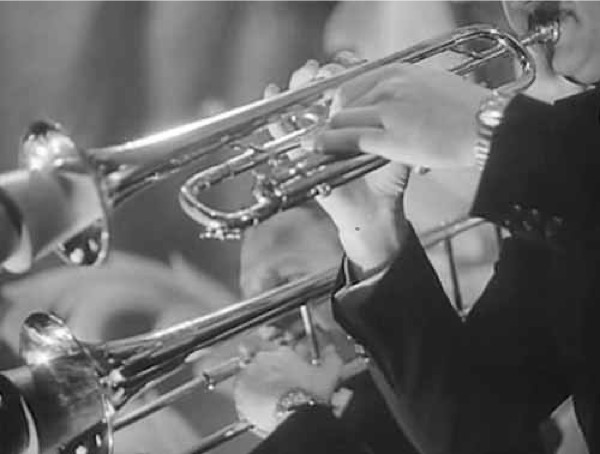 Most of the convolutions have to do with the manager trying to fire the band, then make them stay, then fire them, then keep them, and so on. No one cared about the plot; it was just a contrivance to provide some verbal and romantic effervescence between the musical numbers. The tunes, alas, aren't top-shelf - but they're directed with Busbyesque angles: