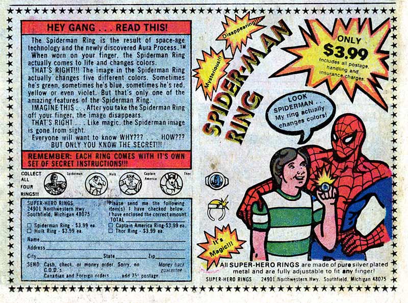 Spiderman was easily impressed, it seems. This may not be obvious to all, but the ad was designed to make you think it was from the Marvel comics news page. As if Stan Lee himself was telling you about this crazy, incredible offer!