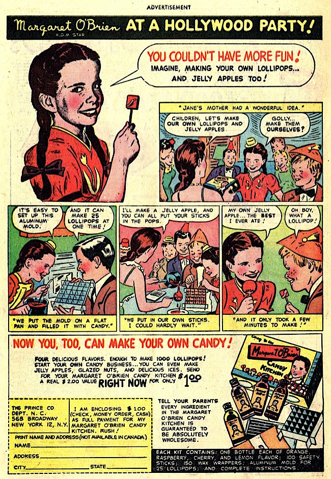 To tell you the truth, I don't know who she is. I probably should. But I don't. I do wonder why she has a large button on her head, and what might happen if you press it. Maybe they had to push it every fifteen minutes to release chemicals that slowed aging, and thus kept her career alive. I also wonder whether "Hollywood" moms would encourage the kids to make their own lollipops, or just send the man out for some. a