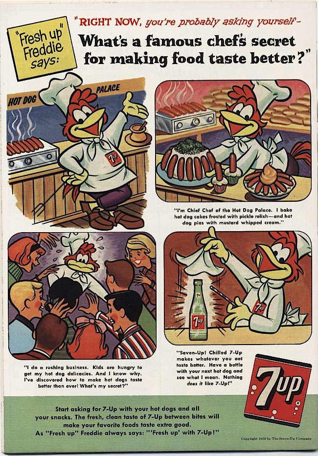 The ultimate 7-Up ad brings together this site and the famed "Cooking with 7-Up" booklet seen in the Gallery of Regrettable Food.