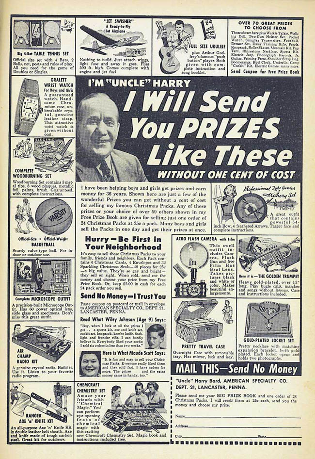 “Uncle” Harry, eh. Seems to have been operating on some rather thin margins, unless all the stuff in the Wonderful Prize Catalog was absolute crap.
