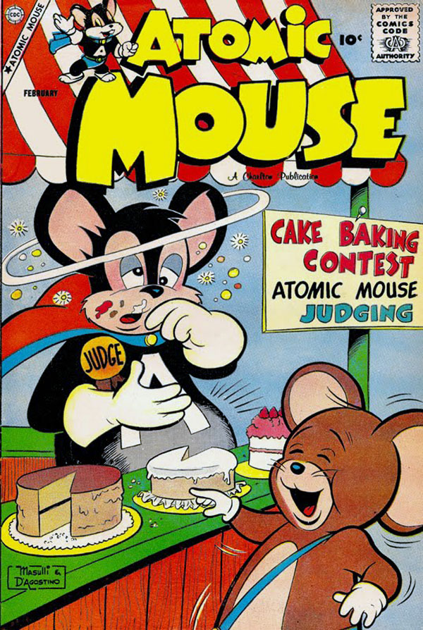 I don't know what that evil little mouse in the foreground is pointing at. Can't be Atomic Mouse.I mean, look at him; he cannot be pointing at Atomic Mouse. Possibly he is gesturing at a cake, but why it should be the object of so much risability I've no idea. |