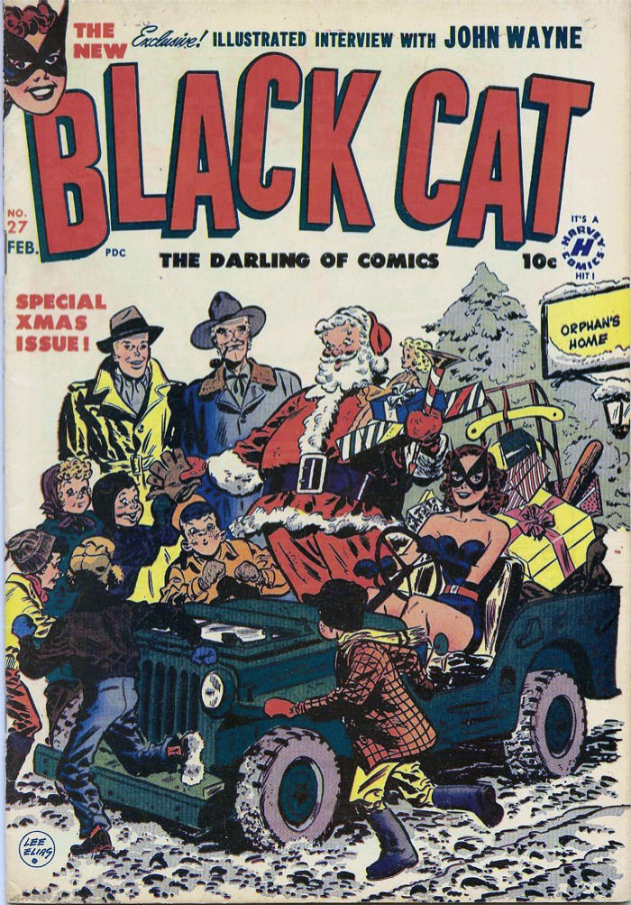 Maybe she's already stopped. There aren't any lines by the tires to indicate motion. Santa is standing, so he's not worried about pitching forward when she hits the brakes. The Reporter and Uncle Six are already here, as if she'd tipped them off. Yes, it's a special Xmas issue! On the newsstands in November, gone by Dec. 1. |