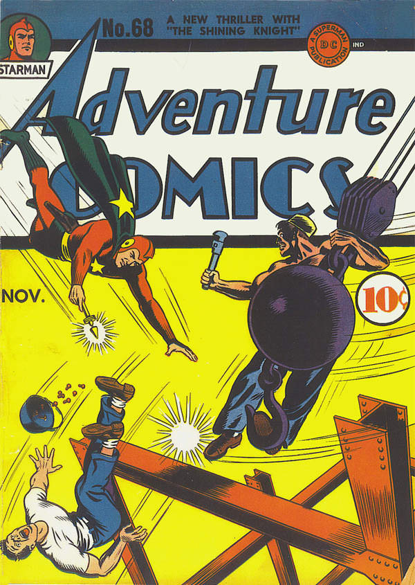 The item he’s holding is the Gravity Rod, later the Cosmic Rod. It helps him get around, but it does seem to require a dedicated hand. Starman was not from the stars; he was an astronomer named Ted Knight. Wikipedia notes: