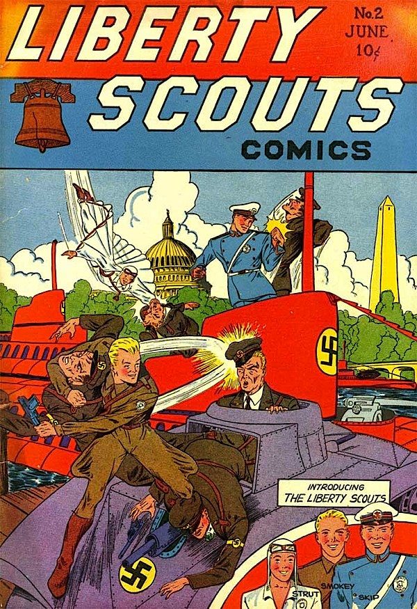 This was probably a training exercise for US troops, and the Liberty Scouts screwed it up for everyone. Next month: the lads give away the coordinates of D-Day! Don’t miss the thrilling episode, “Held Without Counsel!” |