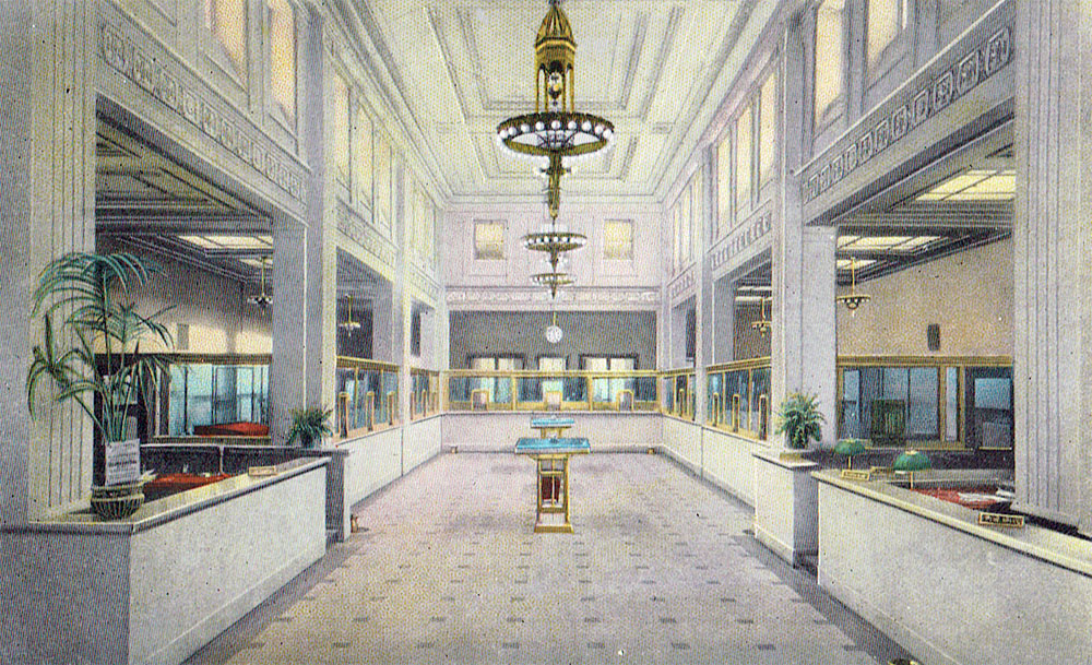 The interior of the First National Bank. Beautiful. Just wonder how they got the light piped in.