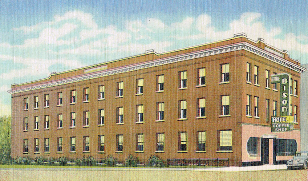 Post modernization. And that was as modern as it would ever get. It’s been rechristened, and now reflects the majesty of the great plains ruminant; the front has been updated in the streamlined style, but it probably didn’t fool anyone. Ginger Rogers wasn’t sitting in the lobby in a white gown.
