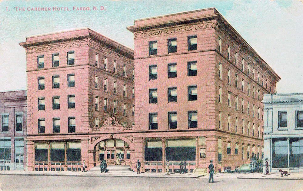 The majestic Gardner Hotel! “Dear Girls,” says the back, “This is a very good hotel. We have a fine room and bath which we used before lunch.” It’s addressed to Misses Parker at 206 East Sandusky Avenue, Bellefontaine, OH, and was sent the evening of March 11, 1909, the year the hotel was opened. There’s just one problem . . .