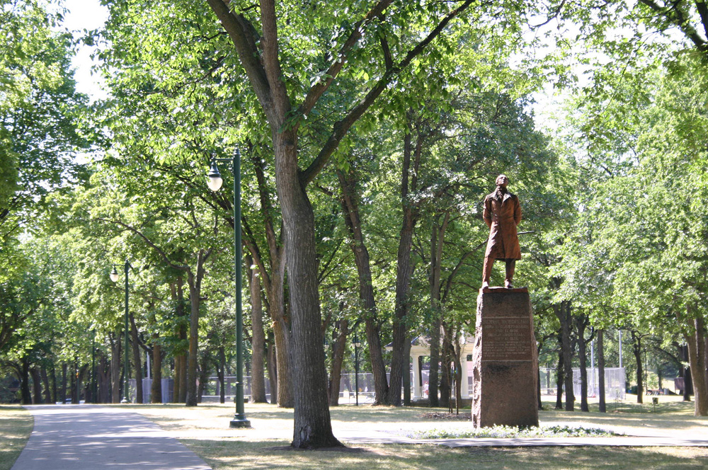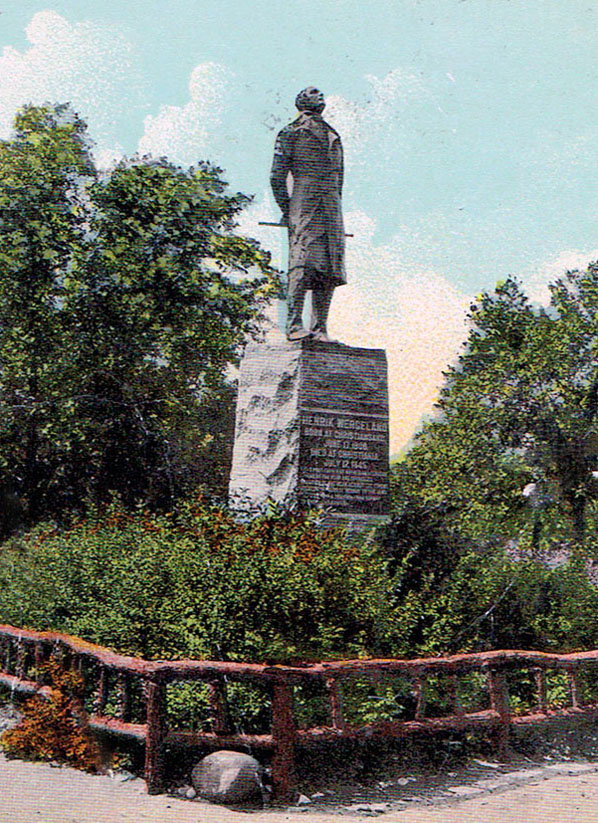 Note the upturned cast of his head, as though he Sniffs the Winds of Freedom; pranksters could not resist shimmying up the statue in the summer and placing a cigarette in his mouth.
