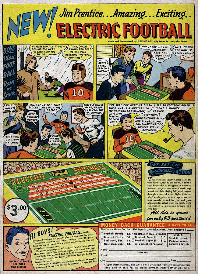 Why? Because it's an electric brain idea, and electric games are tops. Wet your finger, place it on the top! What's that you smell? It ain't Coach's pipe, Jim