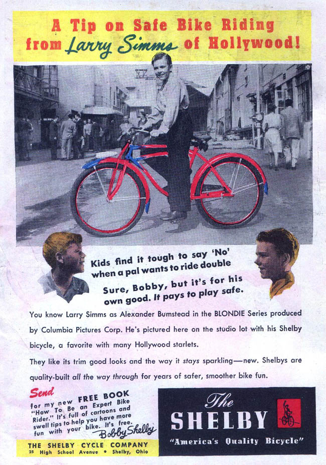 Shelby? Sounds like a girl's bike. Sounds like a sissy's bike. You're not a sissy, are you? You're not pretending you're Larry's sister, are you? Okay shut up and let me ride double.
