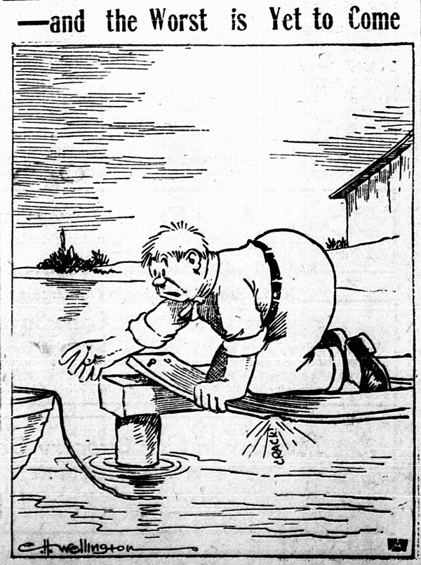 Meet the work of C. H. Wellington, cartoonist mislaid by history. He specialized in finding the humor in the moment between the recognition of one imminent disaster and the realization that it will soon be followed by a worse problem.