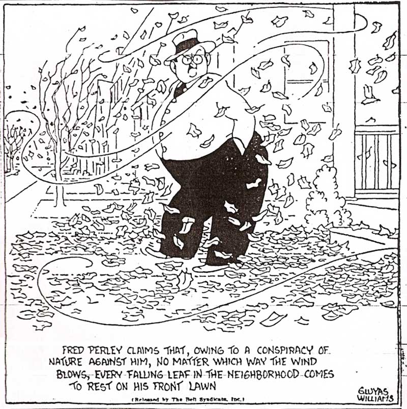 Williams's syndicated one-panel comic ran in the Minneapolis Tribune for two months in 1939. It was apparently unpopular, and was replaced by a lousy serial comic about a poor little rich girl. Most of the comics have suffered the usual depredations visited upon the ancient microfiche; I've cleaned up a few examples.