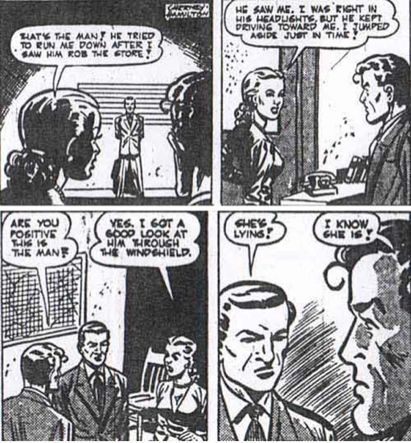 “See, you were planning the heist with her. Inside job and all that. But she had another guy on the side. He pulled the job. She fingers you. She’s so anxious to finger you that when I drag one guy out in the lineup, she says that’s the man. No doubt. And you’d love to turn her in, wouldn’t you? But you can’t. You can’t squeal. Maybe you still love her. Can’t blame you. Hard face, not my kind of tune, frankly, but choice pins. And you’re in a pin man, aren’t you?