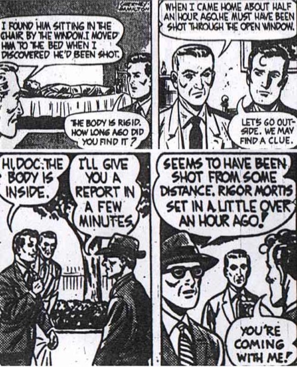 “Your chin is pointy. It’s certainly pointier than mine. See? You have a pointy chin and a pointy nose. Birds like you are always guilty. You’re going to be surprised when you get to prison, because most of the guys look like you. Us square-jawed guys, we behave; we play by the rules, we get the dames, we live it up, we get to carry badges. You pointy-faced guys are a whole different breed. Makes my job easier, I’ll say that; if I walk into a crime scene, and there’s a pointy-faced guy, well, snap on the bracelets and walk him to the judge, ‘cause there’s your man.”