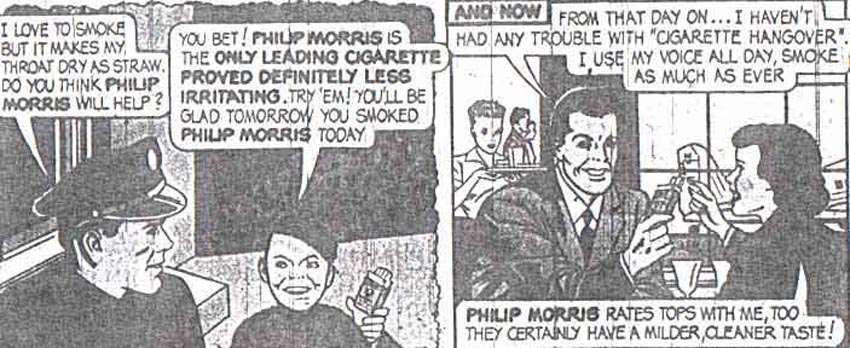 By the end of the scenario, Tom’s still employed - and obvious a dead-eyed raving lunatic, too. But, hey! No more cigarette hangover - another of those manufactured ailments ads invent to move the merch.