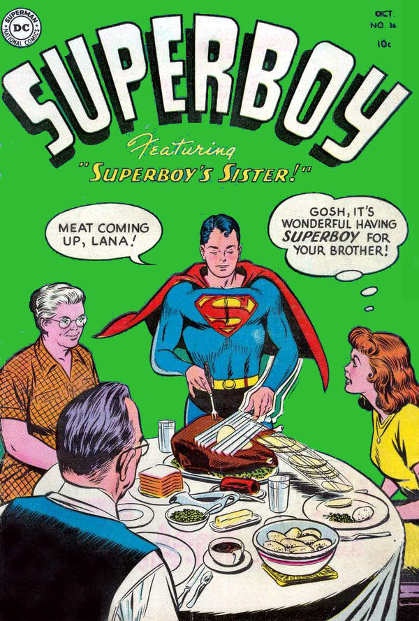 You might want to phrase that differently, Superboy. She is your sister. Even though she can't possibly be your sister, because you don't have one, and that's Lana Lang, the redhead girlfriend from your early days. So, no.