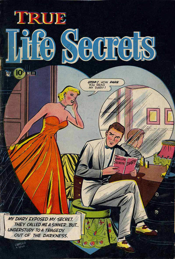 He has a point. It’s hard to blame him for picking up something that says TRUE LIFE SECRETS when the reader is holding something called TRUE LIFE SECRETS. Of course, it all worked out well, since the secret was charming and cute. It’s never a horrible secret. Nothing worse than being jilted by Tommy or Biff and missing them ever so terribly.