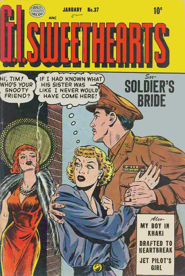 “Soldier’s Bride”! In a magazine called “G.I. Sweethearts.” Imagine that story conference. "Okay, boys, I want the cover story to be about a girl and a soldier. I’ll leave the rest up to you."