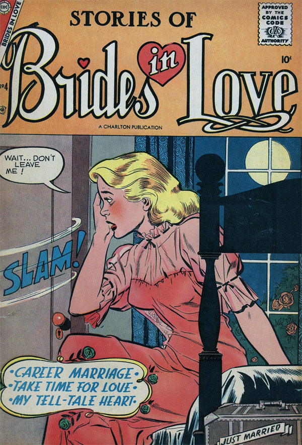 The abandoned bride is a staple of the romance comics - poasibly because there are only so many stories you can tell when the subject is “Brides.” Sorry - Brides in Love, a companion title to “Brides in Mild Affection” and “Brides Seething with Spittle-Flicking Contempt.”