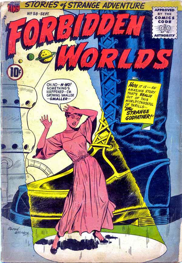 There’s a subset of fetish videos called “Crush,” which feature enormous feet stepping on small, defenseless things. I’m not saying that Ogden Whitney, the artist of this picture, had that fetish; I’m not sure it even existed in the human mind at this time. But still.