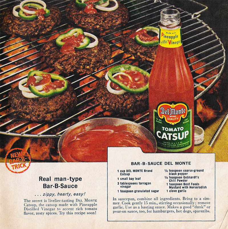 Interesting how Del Monte has dropped the pineapple vinegar boast. They dropped the CATSUP spelling in 1988. They never owned up to the man-type-sauce aspect. Trade secrets, you know. |