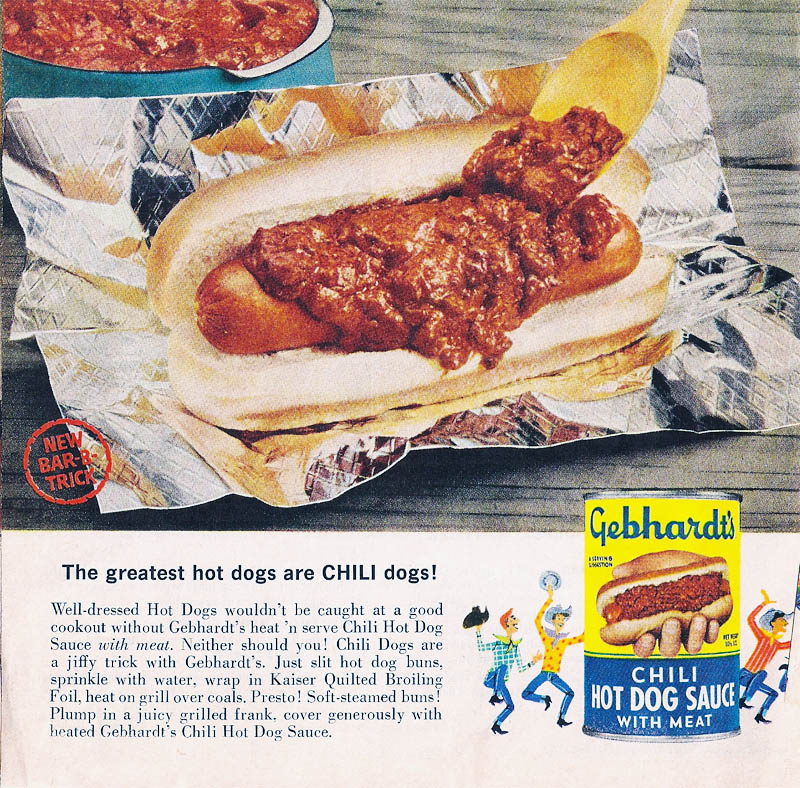 This Bar-B-Trick sounds pretty good, but I wouldn't want to insist that the greatest hot dogs are chili dogs. It's subjective. You want to argue a subjective stance that cannot be objectively proven with a group of cowboys? They're in high spirits, as evidenced by their legs and tendency to hold their hands over their heads, either holding plates or hats. Argue with a cowboy in that mood and you're likely to get yourself all shot up. |