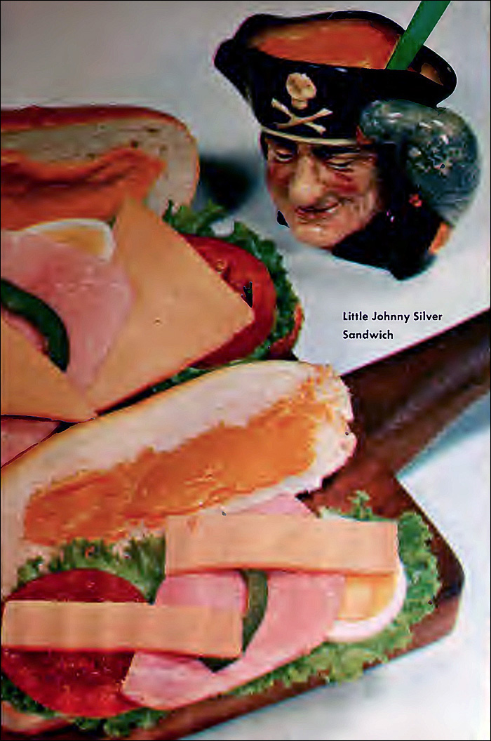 Yo ho ho: the decapitated head of a murderous seafarer grins with delight at the smear of filth on the sandwich.