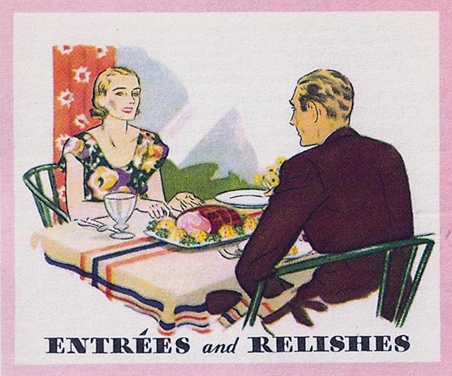 Well, darling, I must say you're looking smashing today. Your short hair, your square jaw - why, the general trend towards unemployment, deindustrialization, and abolition of the male role as breadwinner seems to have brought out your most attractively mannish qualities. Which frees me up to express my own effete Leslie Howardish feminine aspects! Smashing! Let's celebrate by pretending this darkish slab of Jell-O is an expensive ham, shall we?