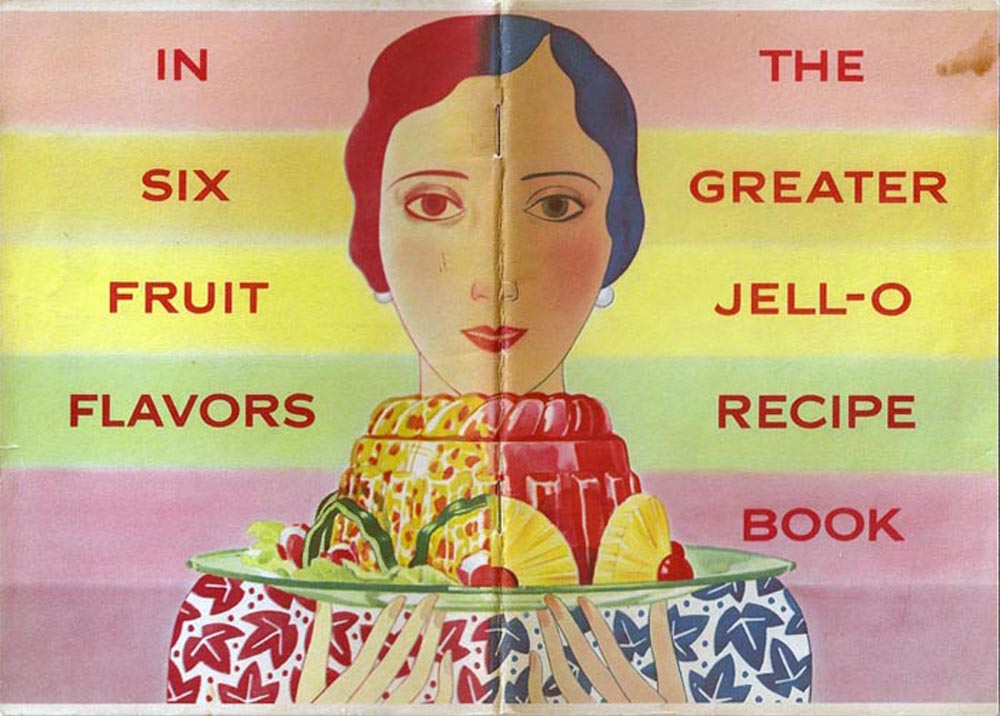 Repeat the holy text: IN THE SIX GREATER FRUIT JELL-O FLAVORS RECIPE BOOK. The great promotional apparatus was always pushing the same six flavors - the heady days of Kiwi-Strawberry were decades away - but that didn't stop them from suggesting that a life of elegance and class-status could be briefly glimpsed if you partook of the wiggly ambrosia.
