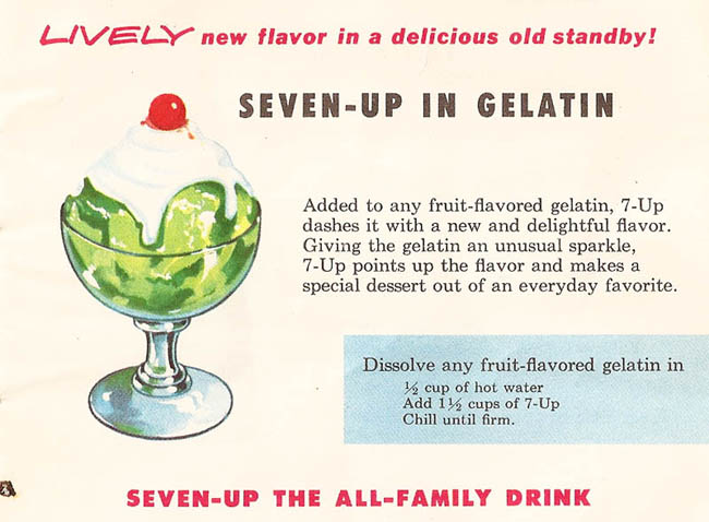 | When you’re done gashing the fat, dash the gelatin with an unusual sparkle. (There’s that word again.) Apparently the carbonated bubbles survive and catch the light, making your guests think you embedded the Jell-O with small shards of glass. It’s a hell of a lot more likely than thinking you poured Seven-Up in the stuff.  |