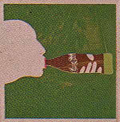 . . . Well, to Kojak fellating a soda bottle, apparently. Another fine example of the ironic appropriate of advertising imagery school of art. Imagine yourself drinking from a bottle. Position your hand. Can you get your fingers in the position shown here? Nope. Thats because its not your hand |