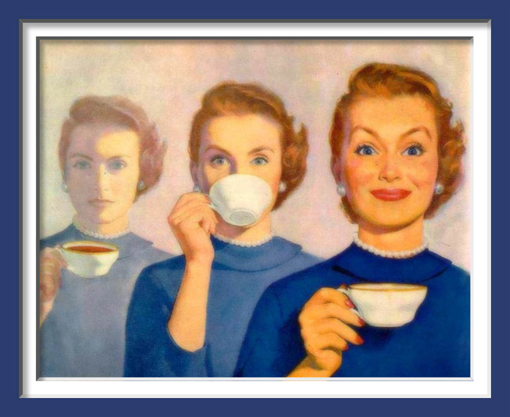 This work was discovered in a buried "recroom," and was thought to be a single painting about the persistence of recollection. No matter how happy the woman is now, behidn her is a shade of her true self, wide-eyed and awake.