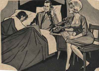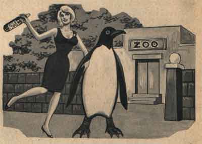 Now, the odd illustrations that accompany a page of "news briefs." Above: I dreamed I engaged in bestiality with a genetically enhanced flightless bird while drunk in my Maidenform bra! |