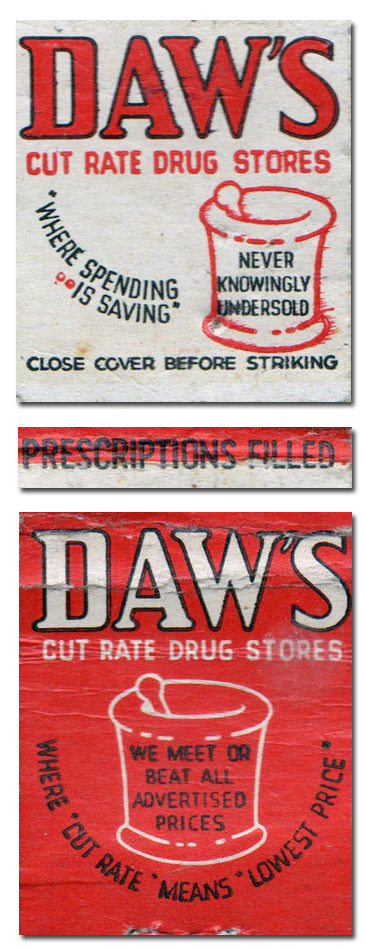 It was a 40-store chain based in Rochester NY; swallowed up by Rite-Aid after a while. The local paper has a story on the chain, and I'd link to it, but it’s a hideous Gannett site with an autoplay video with sound. Which is like walking into Daw’s in the old days, and the manager would stand in front of you and talk loudly, and you had to stand there looking for an X over his shoulder.