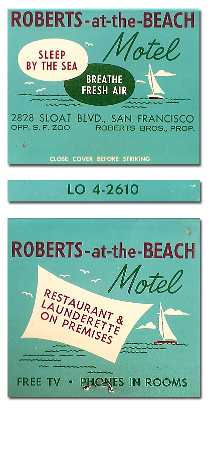 "Founded in 1897 as the "Sea Breeze Inn" at Great Highway and Rivera by Shorty Roberts father(?), it later became "Roberts at the Beach", a popular restaurant, at the same site, which is several blocks from the present Roberts at the Beach on Sloat Blvd. " Apparently the place was known for a famous aquatically inclined horse, Blackie: