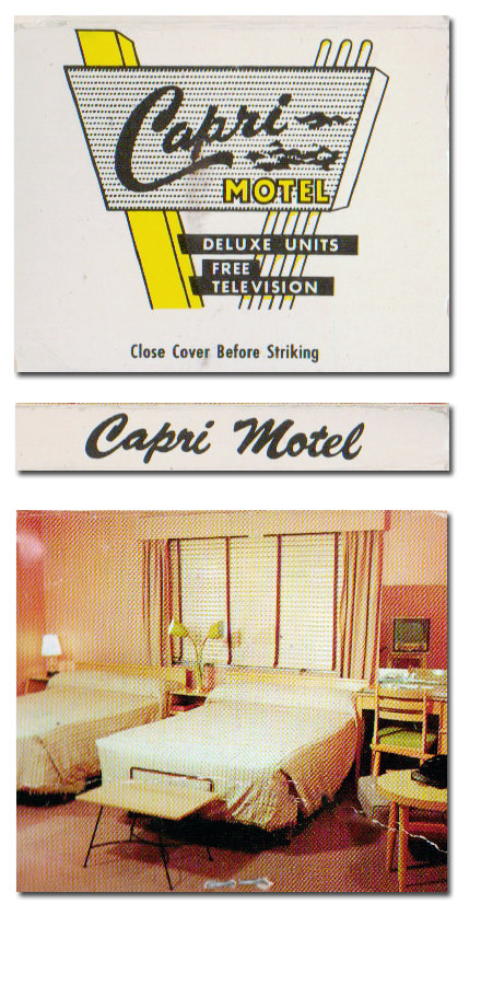 Capri was a popular name, but it seems cursed, as though all motels from that era that still bear the moniker are doomed to disrepair. Not saying that's the case here; the sign is still intact:
