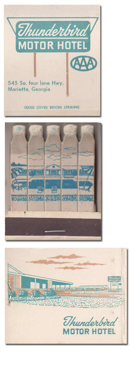 Whoever built this one, they put some capital into marketing: those printed matches don't come cheap. I wonder how many people noticed those things, thought the room might be a little more expensive because of touches like this. "Heck, they got their name on the paper bags aroud the drinking glasses, too. As if I'm going to forget where I'm staying between the bathroom and the parking lot. Honey, did you check the sign to see where we're staying? No, but I remember the bag around the drinking glass, and it says Thunderbird, so I think that's where we're bedding down for the night."