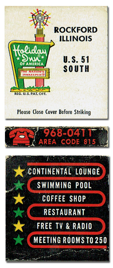 A rare white-and-black HI matchbook. I say "rare" without any particular knowledge of what I'm talking about. Could have been incredibly common for a whlie.