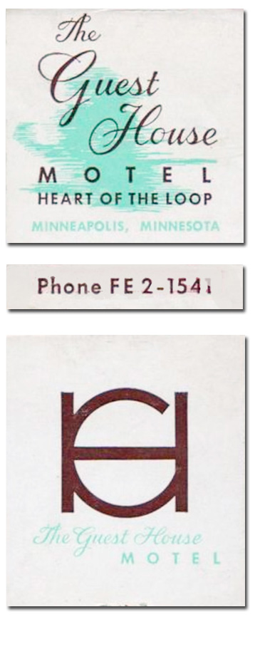 The Guest House, with its incomprehensible logo, was indeed in the heart of the loop, and the cheapness of the design shouldn't have worried anyone about the quality of accommodations. Unless it was the late 70s or early 80s; then the place had slid a bit. I think. I stayed there in the middle 70s. Two story property, Embers restaurant on the corner. A sign of faith in downtown when it was erected; a sign of better times when it was demolished for a new office tower.