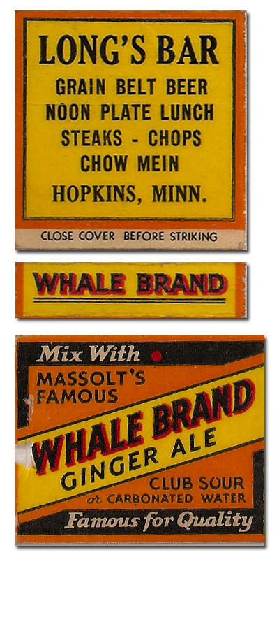 Whale Brand had been around since 1867. The Massolt Brewery was founded by William, and later run by his son Albert. The 1919 City Council Minuutes record the passage of a resolution regulating the beverage trade - why, I've no idea - and Massolt was one of five bottlers in town. The others were Coca-Cola, of course, Gluek, Purity and Sanitary.