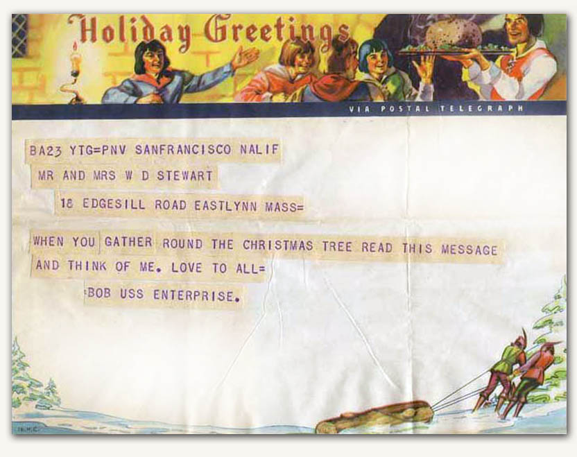 The ho-prithee ye oldentype approach to Christmas, which was already being called the Holidays by GODLESS CORPORATISM! Just kidding. This would appear to be a postal telegraph I guess if the message didnt have to arrive tomorrow, theyd mail it.