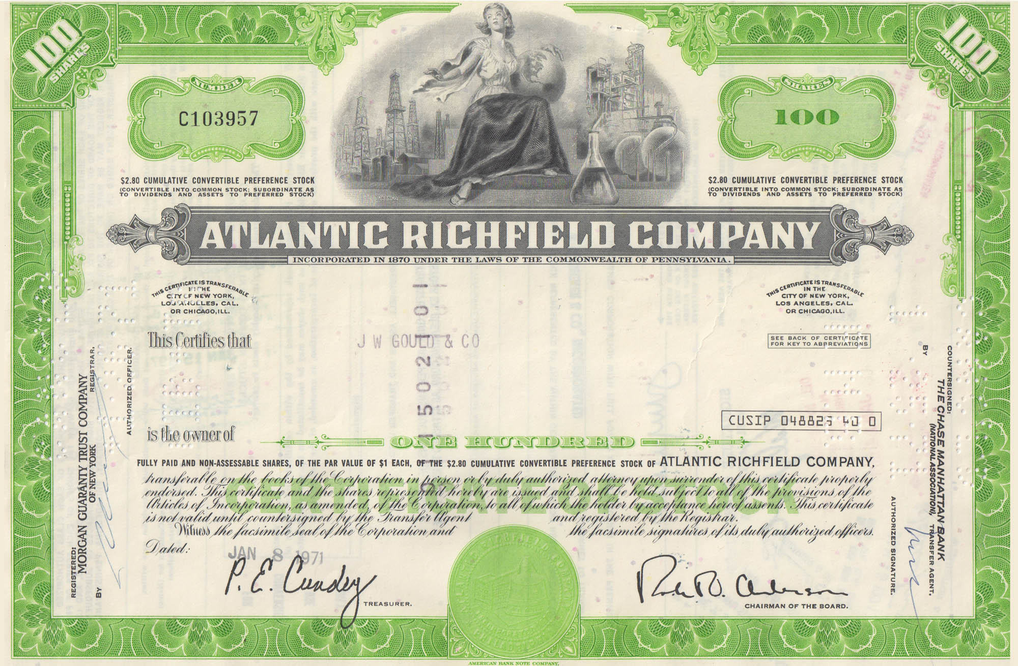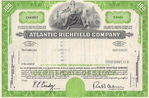 Atlantic Richfield Company - later renamed "ARCO" as part of the trend towards boring corporate names sheared of identity and history - dates back to 1866. The company was merged, unmerged, bought other gas companies, sold them, joined with Exxon to develop the Alaska field, got hit with massive fines for pollution, and eventually disappeared when purchased by British Petroleum.