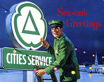Ah, Cities Service. A tale that sums up nearly every major development in the last hundred years. Company starts out, grows, innovates - they built the first long-distance high-pressure pipeline - then gets whacked by regulators, is forced to shed one of its core businesses. Rebounds, gets a boost with war contracts, uses a logo that becomes a familiar part of the commercial landscape, then gets a takeover threat, gets sold to one company, which sells the brands to a new gasoline-distribution paradigm, 7-11 - then ends up owned by Venezuela.
